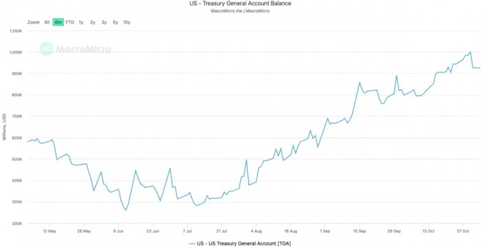 美国政府的 TGA 余额|图源:MicroMacro