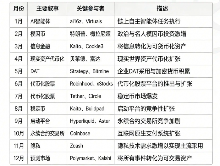 现实资产代币化(RWA)、永续合约去中心化交易平台(perpDEX)、预测市场、信息金融(InfoFi)、隐私计算…… 新的赛道叙事不断涌现,且仍在持续被创造。这些新叙事虽未像当年的 DeFi 那般带动整个市场普涨,却也从未消失。行业并未崩塌,只是外部发展环境发生了改变。
