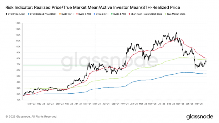 上周,本报告将真实市场均值 7.81 万美元确定为短期阻力区,预计水下投资者的抛压将限制任何反弹。比特币此后已突破该水平,这一发展具有重要的周期意义。